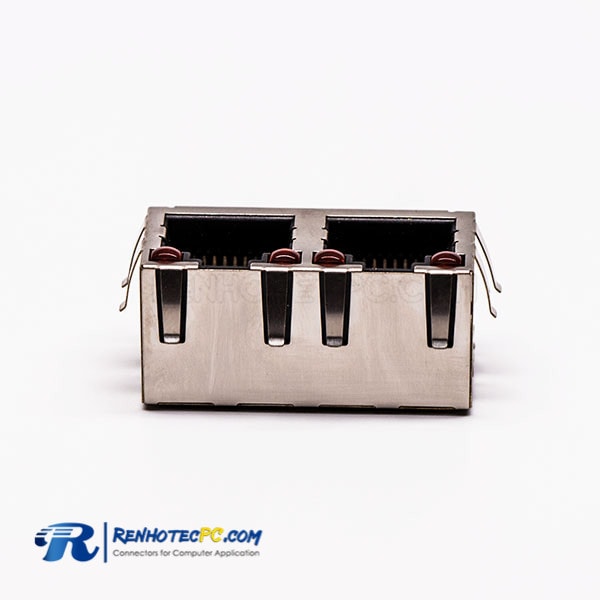 90 Degree RJ45 Cconnector Jack 2 Port with Shield and with LED for PCB